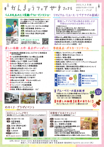 11月3日(月祝)に開催される『環境フェアせき』に出展します!
